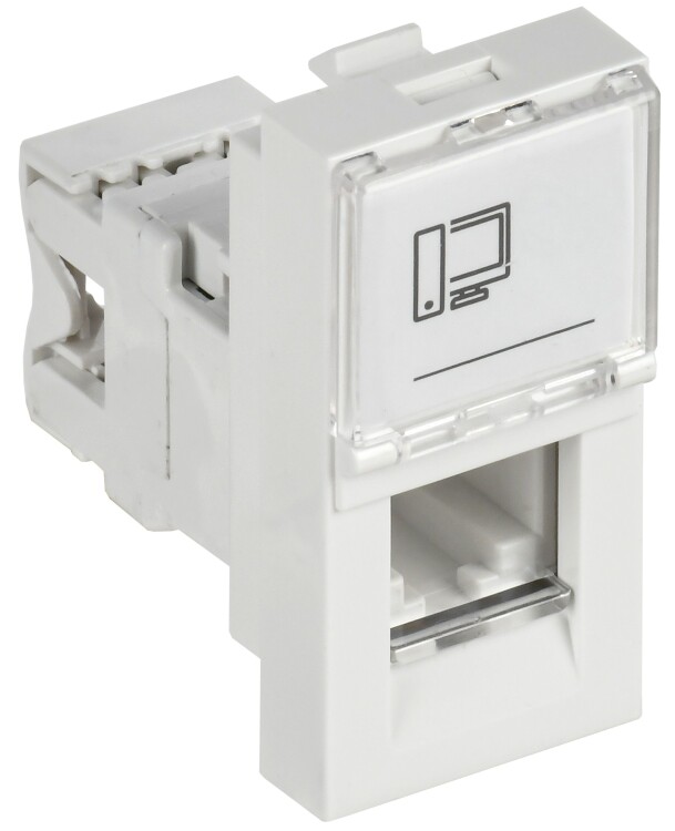 Модульные электроустановочные изделия 45х45 серии ПРАЙМЕР предназначены для организации рабочего места с применением кабель-каналов, напольных лючков или розеточных блоков, а также для открытого монтажа в коробки типа КМКУ. Розетка компьютерная RJ-45 предназначена для подключения сетевого кабеля компьютерной и прочей оргтехники. Розетка на 1 вход. Комплектуются одним модулем Keystone Jack категории 6 UTP IDC. Размеры, ВхШхГ,мм: 45х22,5х41,7. Цвет - белый. Размеры модульных ЭУИ ПРАЙМЕР: 1 модуль = 45х22,5 мм 2 модуля (1 пост) = 45х45 мм