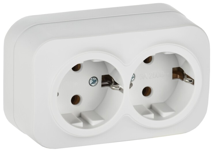 GLORY Розетка 2-местная для открытой установки с заземлением без защитных шторок 16А РС22-3-ХБм белы