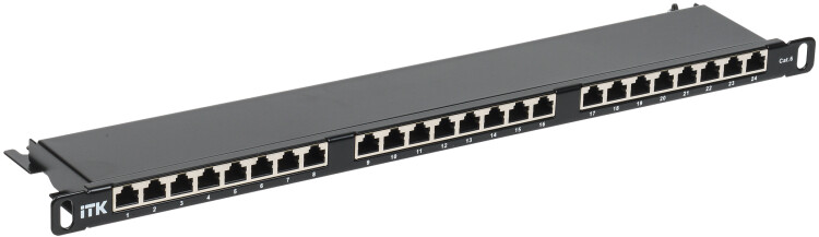Коммутационные панели или патч-панели являются важнейшей частью любой СКС и IT-инфраструктуры здания и сооружения с большим количеством информационных розеток и терминальных портов конечных пользователей, которые необходимо коммутировать на порты активного сетевого оборудования, размещенного в серверных и распределительных узлах. В зависимости от способа крепления, масштабности кабельной системы, типа сети ITK изготавливает патч-панели для настенного монтажа или монтажа в 19-дюймовый конструктив, по количеству портов: 12-, 24-, 25-, 48-, 50-, категорий: 3 (телефонные), 5E, 6, 6A, в экранированном исполнении и без защитного экрана.