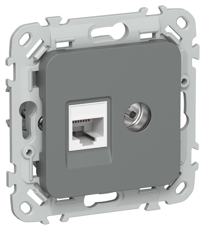 FLITE Розетка 2-местная RJ45/TV категория 5Е UTP РКТВ5е-2-0-ФлМА мокрый асфальт IEK