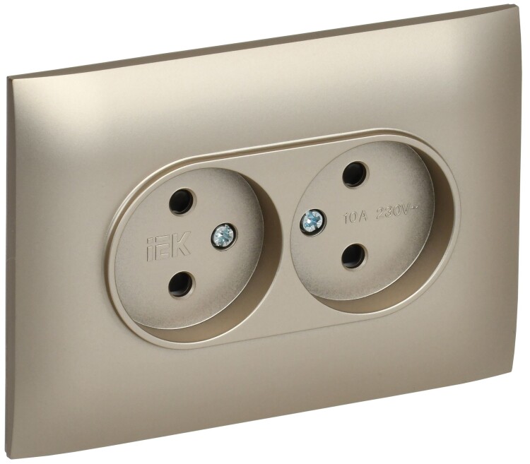 SKANDY Розетка 2-местная без заземления с защитными шторками 10А в сборе SK-R09Sh шампань IEK