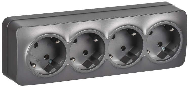 GLORY Розетка 4-местная для открытой установки с заземлением без защитных шторок 16А РС24-3-ХСм стал