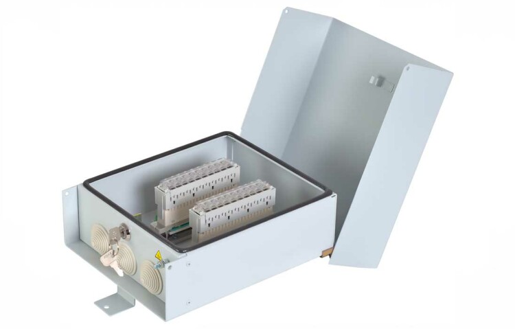 Ящик кабельный распределительный ЯКГ-20-Р предназначен для защиты кабельных линий от воздействия грозовых явлений и перенапряжений и устанавливается в местах перехода кабельных линий на воздушные. ЯКГ представляет собой модернизированное устройство УКС-10М (20М, 30М). Оснащён двумя комбинированными кронштейнами, благодаря чему может комплектоваться либо плинтами типа LSA, либо однопарными модулями типа МВТ. Ящики ЯК всех модификаций устанавливаются вне помещений на стенах домов, столбах линий электропередачи и т.п. с использованием для крепления либо винтов-саморезов, либо ленточных хомутов. Конструкция крышки ящика исключает попадание внутрь воды даже при нарушении герметичности уплотнителей. Для предотвращения несанкционированного доступа ящик снабжен замком с универсальным секретом.