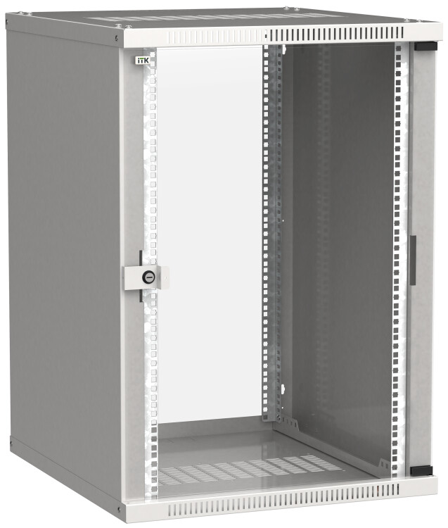 Шкаф настенный 19", 18U, 600х650мм, стекл. дверь, серый, LINEA WE, ITK LWE3-18U67-GF