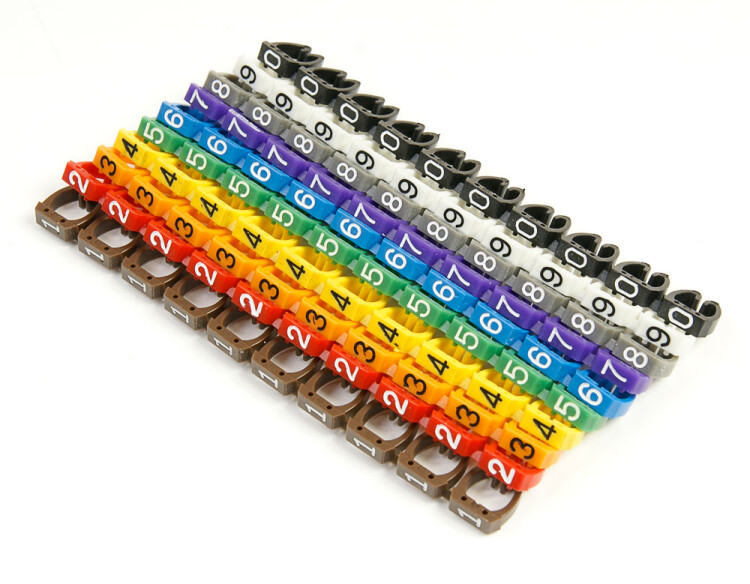 Маркеры на кабель6-7мм, защелкивающиеся, "0"-"9", 10 цветов, Cabeus MR-67