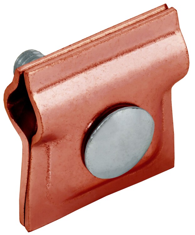 Зажим соединительный круглого проводника универсальный предназначен для параллельного и перпендикулярного соединения круглых проводников. Подходит для использования в качестве держателя на фальцевую кровлю или металлические конструкции. Крепится к кровле при помощи метизов. Зажим проводника происходит при помощи болтового соединения. Материал корпуса - медь.