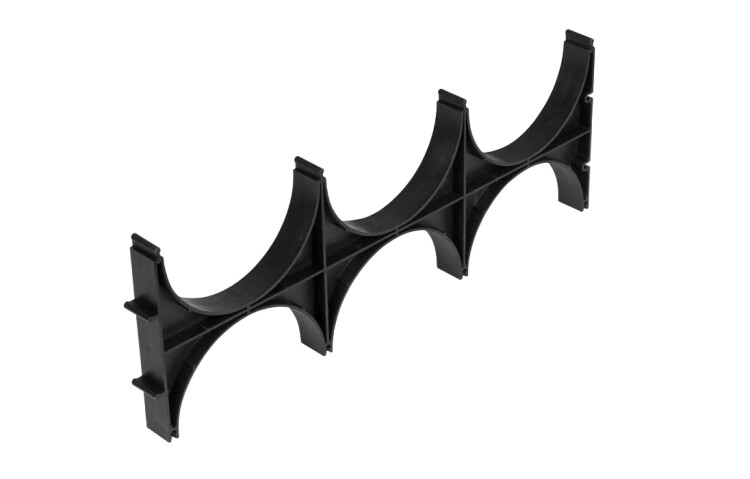 Предназначен для закрепления нескольких труб в блок при прокладке в грунте. Кластер представляет собой решетчатое изделие с ложементами для укладки труб, выполненное из пластика. На корпусе кластера имеются специальные выступы и пазы для соединения нескольких кластеров в единый блок при прокладке большего количества каналов. Использование кластеров при одновременной прокладке нескольких труб в одной траншее обеспечивает выдерживание равного заданного расстояния между трубами, препятствуя их смещению при засыпке песком, исключает возможность заломов плети трубопроводов, тем самым предупреждая проблемы с протяжкой кабеля. Кластер «ССД-Пайп УльтраФ» соответствует: ● ГОСТ Р 20.57.406, метод 211-1 (стойкость к ультрафиолету); ● ГОСТ Р МЭК 61386.24-2014 «Трубные системы для прокладки кабелей. Часть 24. Трубные системы для прокладки в земле»; ● ГОСТ Р МЭК 61386.1-2014 «Трубные системы для прокладки кабелей»; ● ГОСТ Р 53313-2009 «Изделия погонажные электромонтажные. Требования пожарной безопасности. Методы испытаний»