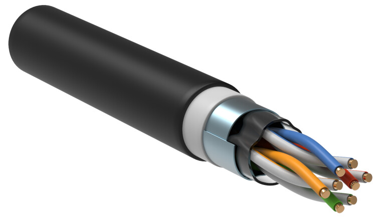 Кабель ITK категории 5е для внешней прокладки 4х парный U/UTP в двух оболочках: ПВХ и LDPE, цвет черный. Применяется для построения структурированных кабельных систем, локальных вычислительных сетей, для общей коммуникационной инфраструктуры между зданиями, для магистральных подсистем и для организации уличной «последней мили».