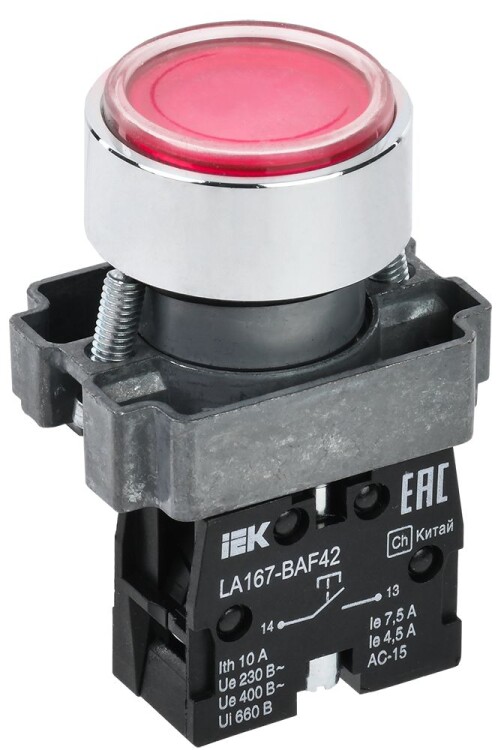 Кнопка управления LA167-BAF42 d=22мм 1NC красная IEK