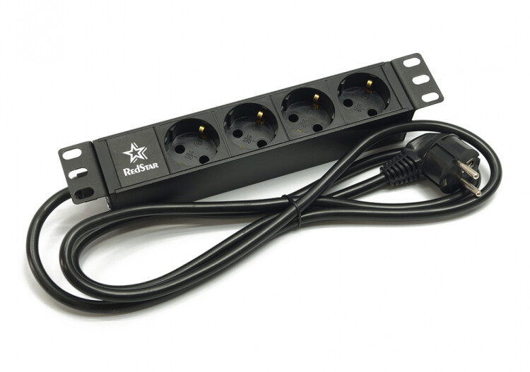 Блок розеток 10", 1U, 4 гнезда (Schuko), 16A, черный, кабель 2м, RS10-4SH-16-2EU
