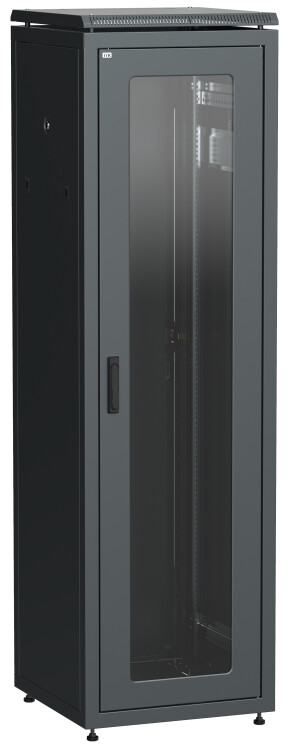Шкаф напольный 19", 42U, 600х800мм, стекл. перед. дверь, задн. метал., черный, LINEA N, ITK LN05-42U68-GM