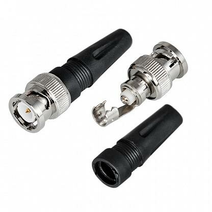 РАЗЪЁМ штекер BNC под винт с колпачком PROconnect предназначен для подключения коаксиального кабеля c волновым сопротивлением 50 и 75 Ом, диаметром до 7 мм, к видеокамерам, видеорегистраторам, мониторам и другим радиоэлектронным устройствам. BNC-коннектор (BNC сокр. от Bayonet Neill Concelman) под винт - электрический разъем с байонетной фиксацией закрепляется на кабеле зажимом с помощью винта центрального контакта (центральная жила - под винт, оплетка - обжимается). Этот способ крепления значительно проще и быстрее, чем пайка, но его надежность и качество соединения остаются на неизменно высоком уровне. Пластиковый колпачок защищает соединения и предотвращает кабель от перегиба в месте крепления к разъему. BNC-разъем изготовлен из материалов: корпус - никелированный цинк; центральный контакт - латунь с напылением технического золота; диэлектрик - фторопласт; колпачок - пластик.