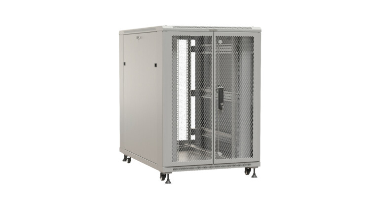 Hyperline TTBR-2281-DD-RAL7035 Шкаф напольный 19-дюймовый, 22U, 1100x800х1000 мм (ВхШхГ), передняя и задняя распашные перфорированные двери (75%), ручка с замком, цвет серый (RAL 7035) (разобранный)