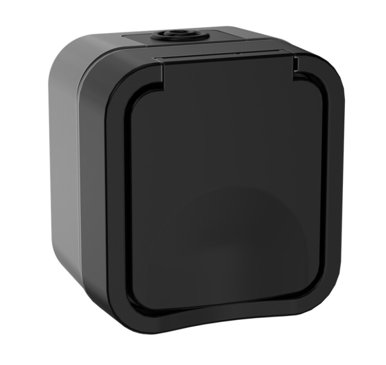 Розетка 1-местная с з/к и крышкой, 16А, IP55, графит, IEK TS-R16-16-55-K53