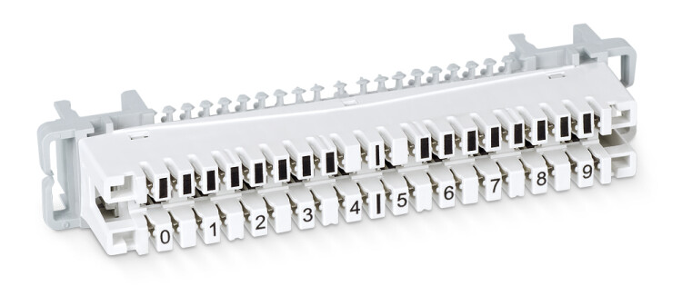 Плинт размыкаемый KRONE предназначен для использования в телефонных линиях для организации разъемного соединения. Такой плинт обеспечивает возможность разрыва цепи с помощью размыкающих вставок на одну пару (PD-1) или десять пар (PD-10). Конструкция плинта предполагает его установку как в настенные монтажные хомуты или монтажные хомуты, устанавливаемые в стандартные шкафы или стойки 19” так и на раму-штангу с круглыми направляющими. Возможна также установка комплексной защиты от перенапряжений в виде кассеты для разрядников (PrMag) с 3-х полюсными газонаполненными разрядниками (3-pole GTA). Тестирование соединений может осуществляться с использованием тестовых шнуров TC-4-pin-6P4C или TC-4-pin-ST. Маркировка кроссировочной стороны плинтов произведена от 0 до 9.