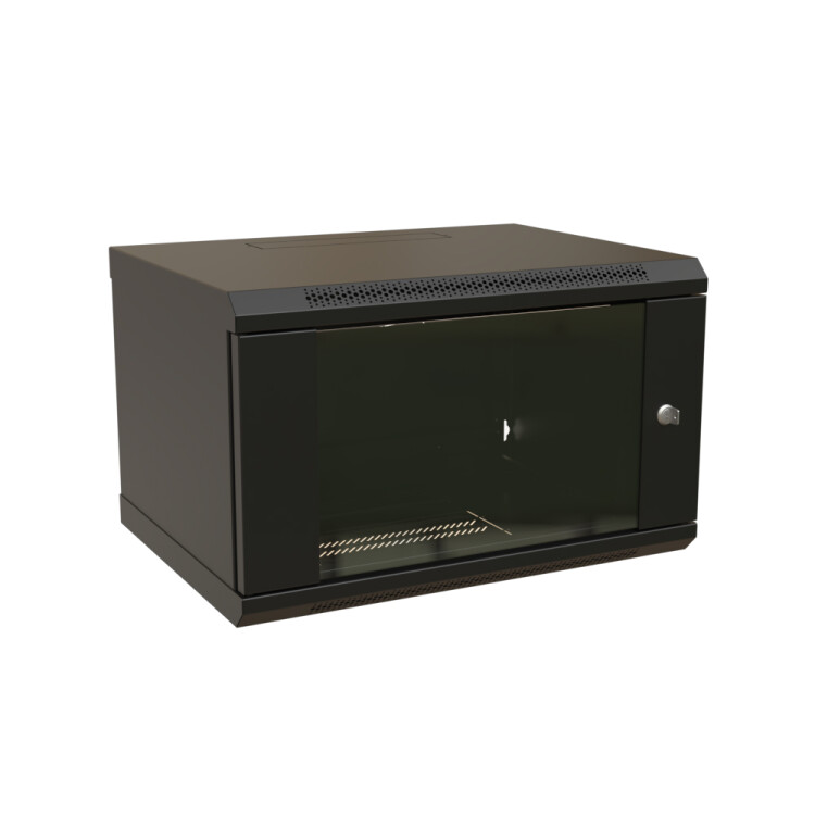 Шкаф настенный 19", 9U, 600х450мм, стекл. дверь, черный, WRline WR-TW-0945-GP-RAL9004