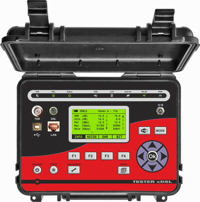 Прибор предназначен для проверки связи со станционным оборудованием xDSL DSLAM (ADSL/ADSL2/ADSL2+/VDSL/VDSL2), измерения характеристик канала и диагностики сигналов о неисправности. Поддерживаемые стандарты VDSL/ADSL: VDSL стандарты: - ITU-T G.993.2 (VDSL2); - Частотные планы Annex A и Annex B поверх POTS; - Поддержка профилей 8a, 8b, 8c, 8d, 12a, 12b, 17a; - ITU-T G.993.5 (G.vector); - ITU-T G.998.4 (G.INP). ADSL стандарты: - ADSL: Multi-mode, ANSI T1.413 Issue 2, ITU-T G.992.1 (G.dmt) Annex A, - ITU-T G.992.2 (G.lite) Annex A, ITU-T G.994.1 (G.hs); - ADSL2: ITU-T G.992.3 (G.dmt.bis) Annex A/L/M, ITU-T G.992.4 (G.lite.bis) - Annex A; - ADSL2+: ITU-T G.992.5 Annex A/L/M. В приборе реализованы: - VDSL2 модем; - Рефлектометр; - Анализатор WiFi-сетей (IEEE 802.11a/b/g/n); - Вывод результатов в цифровом и графическом виде; - Память около 400 xDSL протоколов / 1000 РФГ / более 60 SSID.