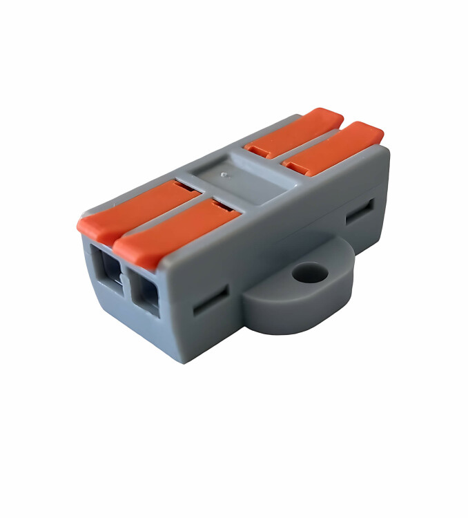 Универсальная проходная изолированная клемма предназначена для многоразового подключения любых типов медных проводников: одножильных и многожильных. Зажим проводов в клемме осуществляется при помощи рычагов. На корпусе есть боковые выступы для возможности крепления к любым поверхностям. Клеммы обеспечивают простой и быстрый монтаж. Основные характеристики: Количество зажимов - 4, Количество линий (полюсов) - 2, Проводник - одножильный/многожильный, Материал проводника - медь, Сечение проводника - до 6,0 мм², Номинальный ток - 40 А, Максимальное напряжение - 600 В, Материал контактов - луженая медь, Материал корпуса - полиамид, Температура эксплуатации -30°C...85°C.
