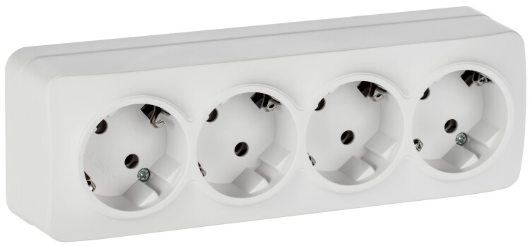 GLORY Розетка 4-местная для открытой установки с заземлением без защитных шторок 16А РС24-3-ХБм белы