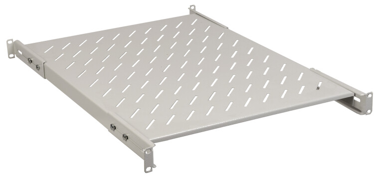 Полки для шкафов и стоек ITK предназначены для размещения на них внутри шкафа оборудования, приборов и аппаратуры, не имеющих кронштейнов и уголков крепления на 19" профили напрямую. К такому оборудованию относятся аккумуляторные батареи, не стоечные ИБП, KVM-консоли, измерительные приборы, медицинское оборудование и прочее. Стационарные полки рассчитаны на тяжелое оборудование с постоянным статичным размещением, крепятся как на фронтальные, так и на задние профили, имеют перфорированную поверхность для обеспечения лучшего охлаждения и отведения теплых воздушных потоков. Ушки, с помощью которых полки крепятся к монтажным профилям, могут регулироваться спереди и сзади в пределах 50 мм, что позволяет увеличить глубину полки на 100 мм и упрощает ее установку внутри шкафа. В зависимости от величины статической нагрузки в ассортименте стационарных полок ITK представлены обычные стационарные и усиленные стационарные полки.