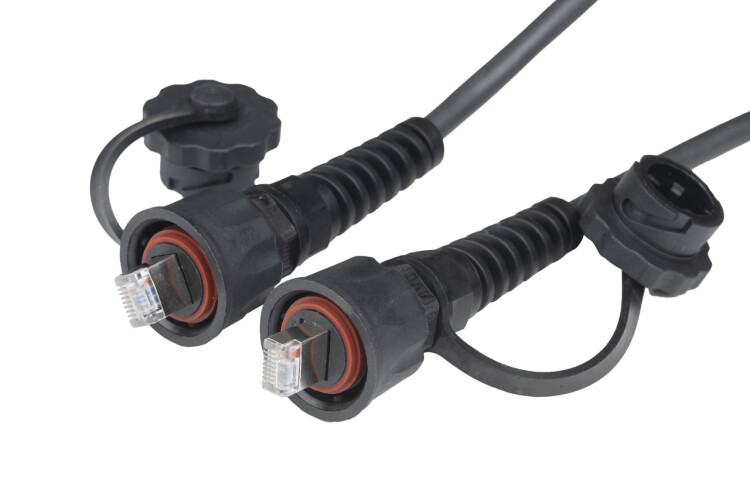 Hyperline PC-IE-LPM-STP-RJ45-RJ45-C5e-2M-BK Промышленный патч-корд F/UTP, экранированный, IP67, категория 5e, с защитными крышками, 2 м, черный