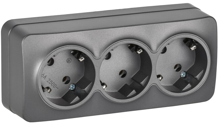 GLORY Розетка 3-местная для открытой установки с заземлением без защитных шторок 16А РС23-3-ХСм стал