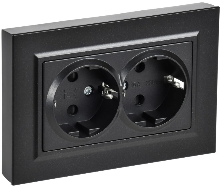 BRITE Розетка 2-местная с заземлением с защитными шторками плоская 16А в сборе РСшПл12-3-БрЧ черный