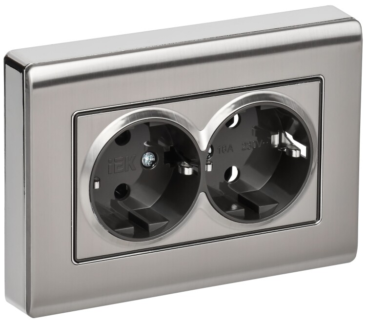 BRITE Розетка 2-местная с заземлением без защитных шторок плоская 16А в сборе РСПл12-3-БрГН металл х