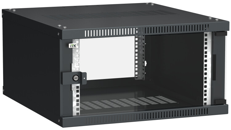 Шкаф настенный 19", 6U, 600х650мм, стекл. дверь, черный, LINEA WE, ITK LWE5-06U67-GF