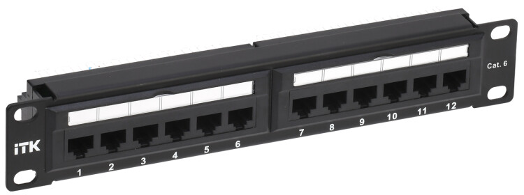 Коммутационные панели или патч-панели являются важнейшей частью любой СКС и IT-инфраструктуры здания и сооружения с большим количеством информационных розеток и терминальных портов конечных пользователей, которые необходимо коммутировать на порты активного сетевого оборудования, размещенного в серверных и распределительных узлах. В зависимости от способа крепления, масштабности кабельной системы, типа сети ITK изготавливает патч-панели для монтажа в 10-дюймовый конструктив, по количеству портов: 8-, 12-, категорий: 5E, 6, 6A, в экранированном исполнении и без защитного экрана.