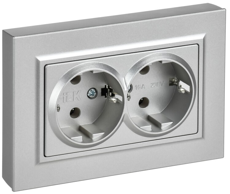 BRITE Розетка 2-местная с заземлением без защитных шторок плоская 16А в сборе РСПл12-3-БрА алюминий