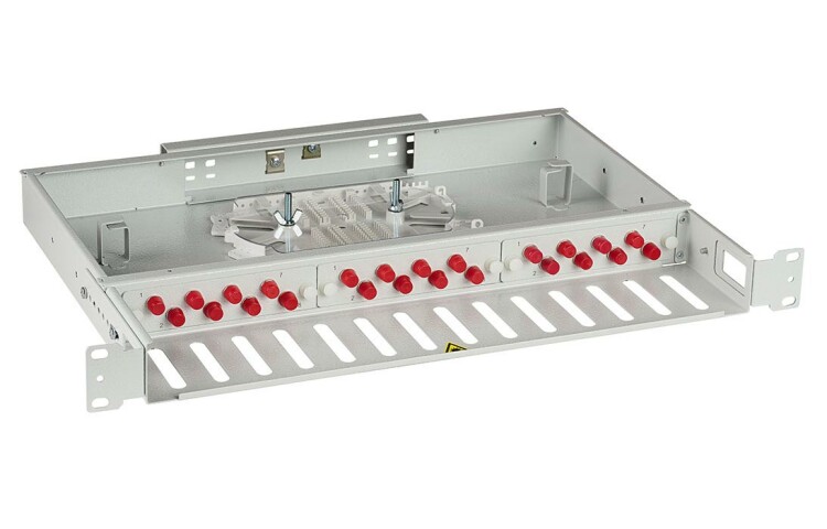 Предназначен для концевой заделки, распределения и коммутации оптических волокон волоконно-оптических кабелей, и устанавливается в стойках монтажных или шкафах телекоммуникационных типоразмера 19'', а при доукомплектации дополнительными кронштейнами в стойках и шкафах типоразмеров 21'' (ETSI) и 23''. Крепление кабеля по оболочке осуществляется металлическим хомутом и/или нейлоновыми стяжками, на специализированном кабельном вводе, который крепиться на задней стенке корпуса. Центральный силовой элемент ОК крепится при помощи металлической скобы. Сменные металлические планки на 8 или 4 отверстий обеспечивают установку адаптеров-розеток различных типов: FC, SC, ST, дуплекс LC. Комплектуется съёмным передним полкой-органайзером.
