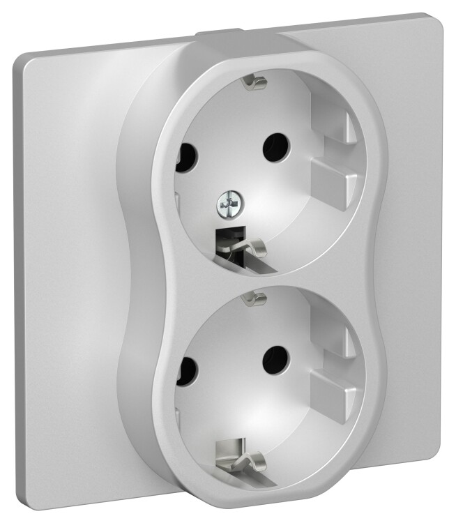 FLITE Розетка 2-местная с заземлением без защитных шторок безвинтовое крепление 16А РС12-1-К-ФлА алю