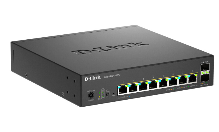 Управляемый коммутатор DMS-1250-10SPL, оснащенный 8 портами 10/100/1000/2.5GBase-T с поддержкой PoE и 2 портами 10GBase-X SFP+, поддерживает технологию D-Link Green и расширенные функции управления и безопасности, обеспечивая высокую производительность и масштабирование сети. Функции управления включают SNMP, управление на основе Web-интерфейса и интерфейс командной строки (CLI) через Telnet и SSH. Благодаря поддержке технологии 2.5 Gigabit Ethernet данный коммутатор является идеальным решением для работы с Wi-Fi 6 устройствами, а 10-гигабитные uplink-порты SFP+ обеспечивают соединение с высокой пропускной способностью при организации более крупной локальной сети.