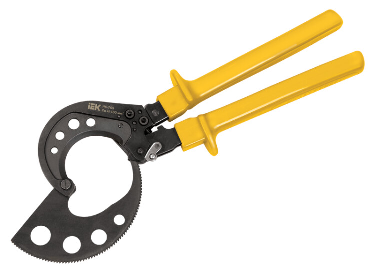 Инструмент для резки кабеля с пластмассовой и бумажной изоляцией изготавливается из инструментальной стали с высокой режущей способностью. Специальная геометрия лезвий позволят осуществлять работу безопасно и быстро. Обладает высокой стабильностью и незначительной массой. Ножницы секторные снабжены храповым механизмом, выдвижными ручками, блокиратором резки. Замок устроен таким образом, что позволяет осуществлять обратный ход лезвия, необходимый в случае попадания в нож посторонних объектов. Чрезвычайно высокая режущая способность инструмента достигается за счёт оптимальной конструкции ножниц и режущих ножей специальной геометрии.