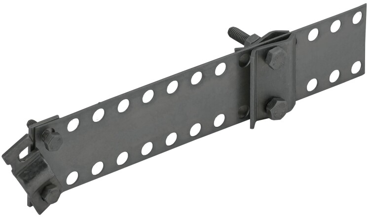 Держатель круглого проводника на трубах предназначен для продольного или поперечного монтажа круглого проводника на трубах различного диаметра и материала. Фиксация производится при помощи хомута. Проводник зажимается болтовым соединением. Материал корпуса - сталь с термодиффузионным цинковым покрытием.
