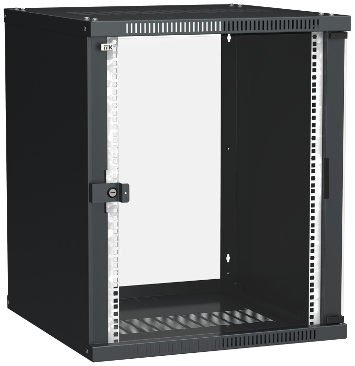 Шкаф настенный 19", 15U, 600х600мм, стекл. дверь, черный, LINEA WE, ITK LWE5-15U66-GF