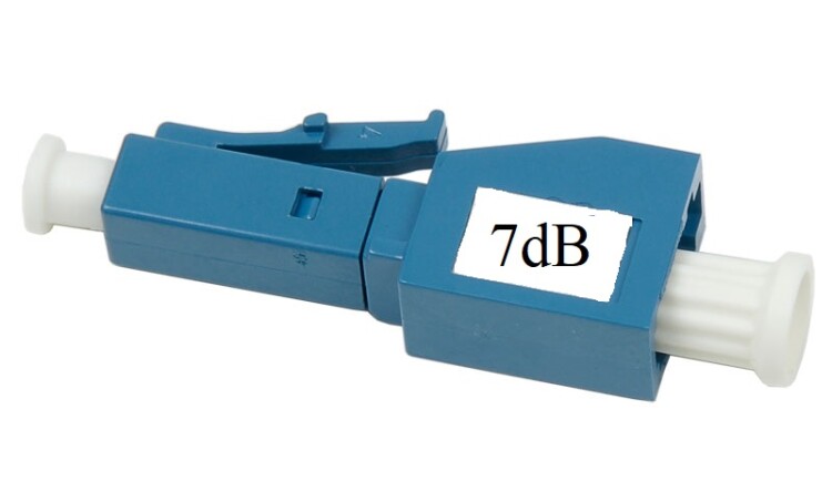 Оптические аттенюаторы предназначены для внесения преднамеренного ослабления в волоконно-оптические линии связи (ВОЛС). Оптические аттенюаторы применяются в локальных оптических сетях, сетях кабельного телевидения, магистральных сетях передачи данных, а также используются при проведении контрольно-измерительных работ. Основные качественные показатели аттенюаторов — высокая стабильность установленного ослабления, низкий уровень обратного отражения, широкий диапазон рабочих температур, компактность и высокая механическая прочность. Оптический аттенюатор Male-Female (вилка-розетка) для волокна SM, разъемы LC, вносимое затухание 7dB.