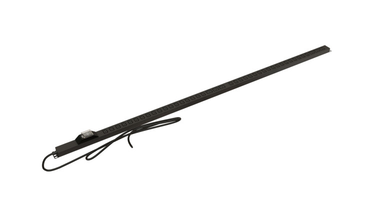 Hyperline SHE-36IEC-6BIEC-B-2.5 Блок розеток, вертикальный, 36 розеток IEC320 C13, 6 розеток IEC320 C19, автоматический выключатель, кабель питания 2.5м без вилки, 32А, 250В, 1860x44.4x44.4 мм (ДхШхВ), корпус алюминий, черный