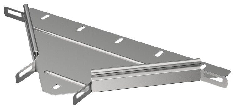 Отвод Т-образный горизонтальный предназначен для организации Т-образного или X-образного отвода кабельной трассы в горизонтальной плоскости. Стыковка аксессуара с лотком осуществляется за счёт телескопического соединителя. Подходит для всех типов листовых лотков серии ESCA. Крышка на аксессуар заказывается отдельно. Аксессуар изготовлен из стали оцинкованной методом Сендзимира (защитный слой цинка не менее 5-10 мкм).