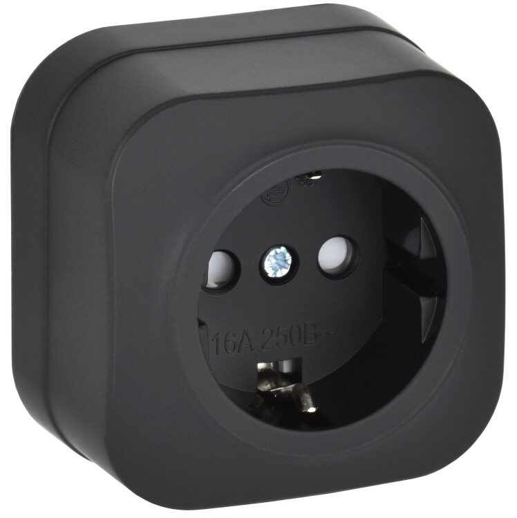 GLORY Розетка 1-местная для открытой установки с заземлением с защитными шторками 16А РСш20-3-ХЧм че