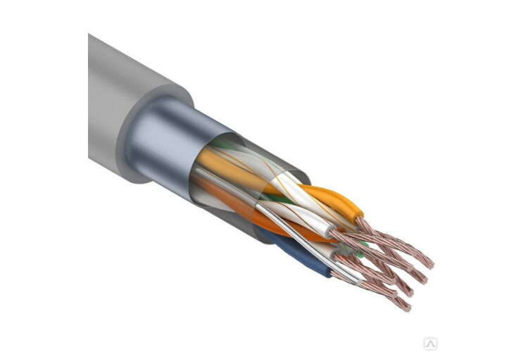Кабель FTP 4PR 24AWG CAT5e 305м. Экранированная витая пара, материал проводника высокоочищенная бескислородная медь, диаметром 24 AWG. Материал оболочки – ПВХ (PVC).