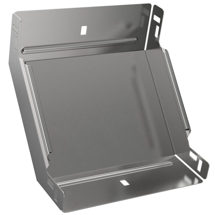 Поворот вертикальный внутренний на 90° предназначен для организации поворота кабельной трассы в вертикальной плоскости. Стыковка аксессуара с лотком осуществляется за счёт телескопического соединителя. Подходит для всех типов листовых лотков серии ESCA. Крышка на аксессуар заказывается отдельно. Аксессуар изготовлен из стали оцинкованной методом Сендзимира (защитный слой цинка не менее 5-10 мкм).