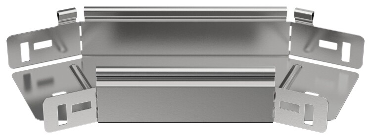 Поворот горизонтальный на 45° предназначен для организации поворота кабельной трассы в горизонтальной плоскости. Стыковка аксессуара с лотком осуществляется за счёт телескопического соединителя. Подходит для всех типов листовых лотков серии ESCA. Крышка на аксессуар заказывается отдельно. Аксессуар изготовлен из стали оцинкованной методом Сендзимира (защитный слой цинка не менее 5-10 мкм).
