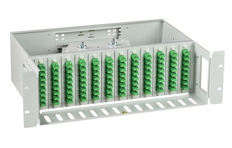 Предназначен для концевой заделки, распределения и коммутации оптических волокон волоконно-оптических кабелей, и устанавливается в стойках монтажных или шкафах телекоммуникационных типоразмера 19'', а при доукомплектации дополнительными кронштейнами в стойках и шкафах типоразмеров 21'' (ETSI) и 23''. Крепление кабеля по оболочке осуществляется металлическим хомутом и/или нейлоновыми стяжками, на специализированном кабельном вводе, который крепиться на задней стенке корпуса. Центральный силовой элемент ОК крепится при помощи металлической скобы. Сменные металлические планки на 8 или 4 отверстий обеспечивают установку адаптеров-розеток различных типов: FC, SC, ST, дуплекс LC. Комплектуется съёмным передним полкой-органайзером.