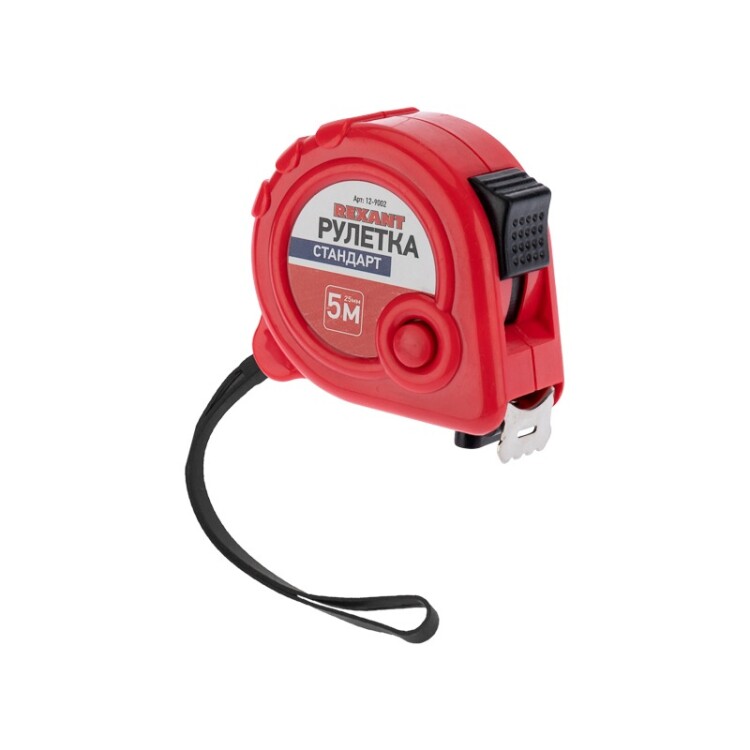Измерительная рулетка REXANT Стандарт используется при проведении измерительных работ в строительстве, хозяйстве, ландшафтных и геодезических исследованиях. Двухкомпонентный прорезиненный корпус, выполненный из ударопрочного пластика, не скользит в руках. Прочное полотно без изломов имеет глянцевое покрытие. Для удобства использования предусмотрены кнопки стопора и фиксации тормоза. Инструмент оснащен удобным зацепом с отверстием посередине, которое позволяет зафиксировать полотно рулетки на шляпке гвоздя или самореза. На корпусе расположена клипса-зажим для фиксации рулетки на ремне, кармане или поясной сумке. Ремешок позволяет надевать инструмент на запястье, чтобы освободить руки для работы.