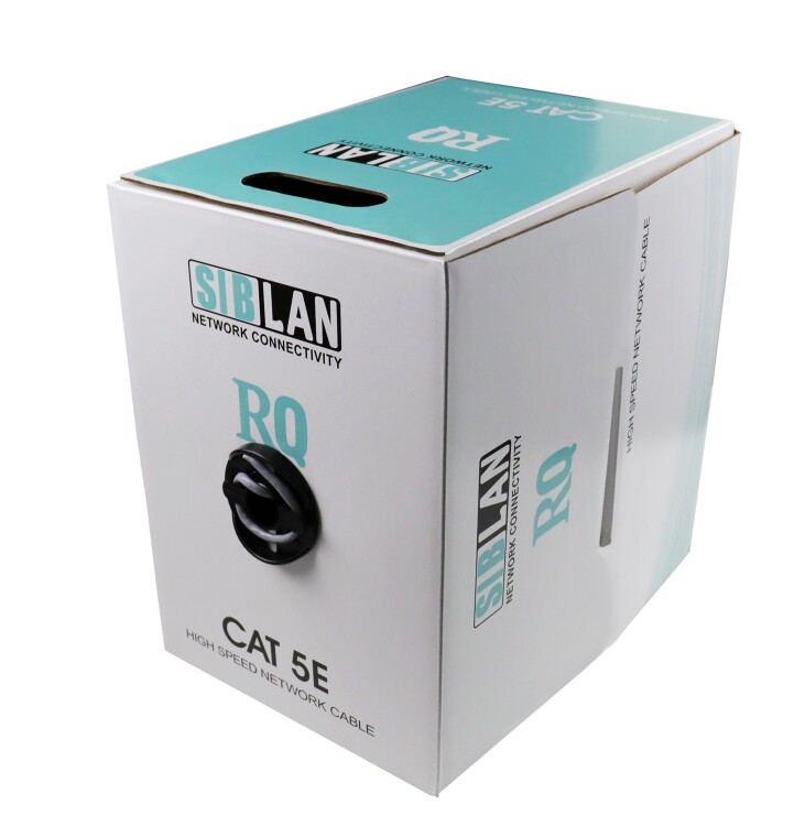 Четырехпарный кабель категории 5е предназначен для использования в локальных системах передачи данных со скоростью до 1 Гбит/с. Кабель производства SIBLAN выполнен в неэкранированном исполнении UTP и используется для прокладки внутри помещений. Диаметр жилы составляет 0.465 мм. Оболочка кабеля изготовлена из PVC (поливинилхлорида). Преимущество данного материала заключается в плотности и прочности, водостойкостью, воздухонепроницаемостью, термостойкостью. На внешней оболочке нанесены метки длины. Витая пара поставляется в картонной коробке типа «easy-pull box».