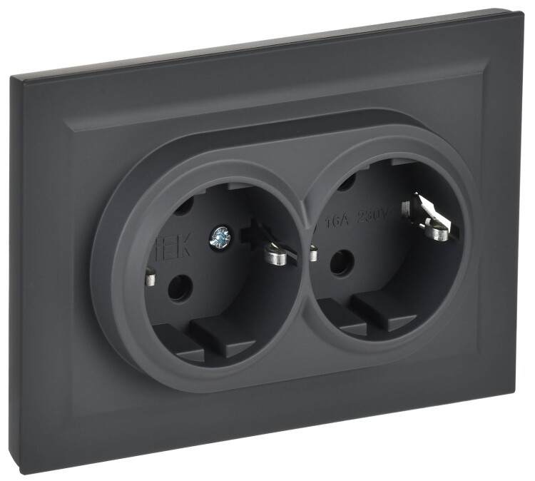 BRITE Розетка 2-местная с заземлением с защитными шторками 16А в сборе РСш12-3-БрГ графит IEK