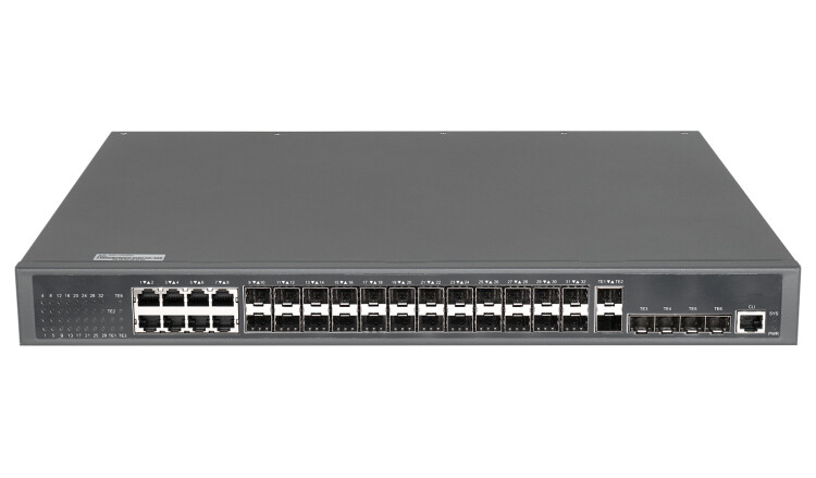 Сетевой коммутатор с возможностью стекирования и функциями управления уровня L3. Обеспечивает гибкость и оптимальное управление сетевым трафиком для соединения нескольких узлов компьютерной сети в пределах одного или нескольких сегментов. Коммутатор оснащен 8 портами доступа RJ45 со скоростью передачи данных 10/100/1000 Мб/с и 24 портами доступа со скоростью передачи данных SFP 100/1000 Мб/с, а также 6 портами соединения SFP+ со скоростью передачи данных 1000/10000 Мб/с. Для удобства настройки и управления сетью, коммутатор обладает возможностью конфигурирования через WEB-интерфейс или командную строку. Коммутатор оснащен двумя блоками питания, благодаря этому осуществляется резервирование питания по схеме 1+1.