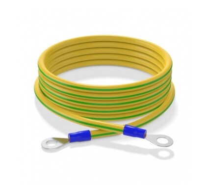 Многожильный (гибкий) кабель оболочка ПВХ желто-зеленого цвета или гибкая перемычка, сечением 2,5 мм². Оконцован с двух сторон наконечниками кабельными изолированными НКИ 6-10 желтого цвета. Предназначен для соединения отрезков кабельных лотков, труб, металлических полос и т.д. между собой для обеспечения надежного электрического контакта. Применяется в системах заземления ( кабельных лотков; электрических и телеком шкафов ), а так же для уравнивания потенциалов между металлическими деталями различного оборудования.